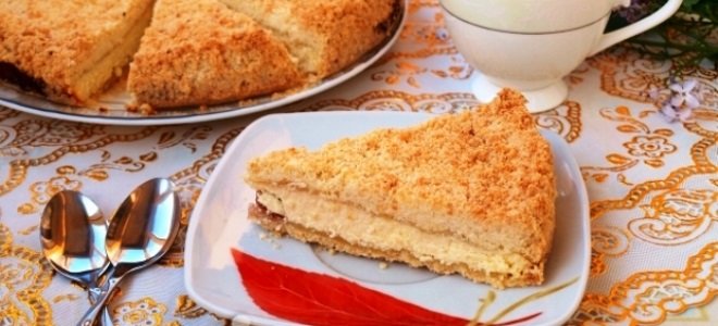 - Сверху засыпают оставшейся частью крошки и выпекают при температуре 180 градусов около одного часа.