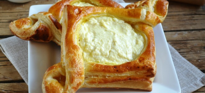 Ватрушки, рецепт которых вы найдете ниже, особенно понравятся тем, кто не хочет тратить время на замес дрожжевого теста. Для их приготовления вам понадобятся готовые слоеные пласты, которые можно легко купить в любом магазине. Форма изделий может быть разнообразной – нет необходимости делать их только круглыми. Четыре порции этого вкусного десерта можно приготовить всего за 35 минут.