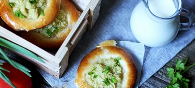 | Ватрушка с картофелем и грибами | Картофельное пюре, жареные грибы, лук | Несладкая начинка, может быть закрытой или открытой |